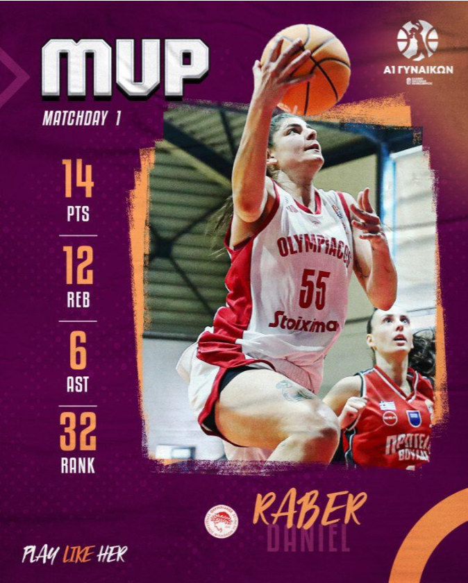 Πολλές ήταν εκείνες που ξεχώρισαν με την Ντάνιελ Ράμπερ του Ολυμπιακού να αναδεικνύεται MVP της 1ης Αγωνιστικής και την Σοφία Γιαπιτζόγλου του Πανσερραϊκού MVP Next Gen.