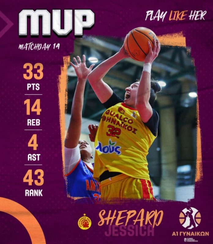 Η Τζέσικα Σέπαρντ του Αθηναϊκού Qualco αναδείχθηκε MVP της 14ης Αγωνιστικής, μια διάκριση που κερδίζει στο φετινό πρωτάθλημα για έκτη φορά!