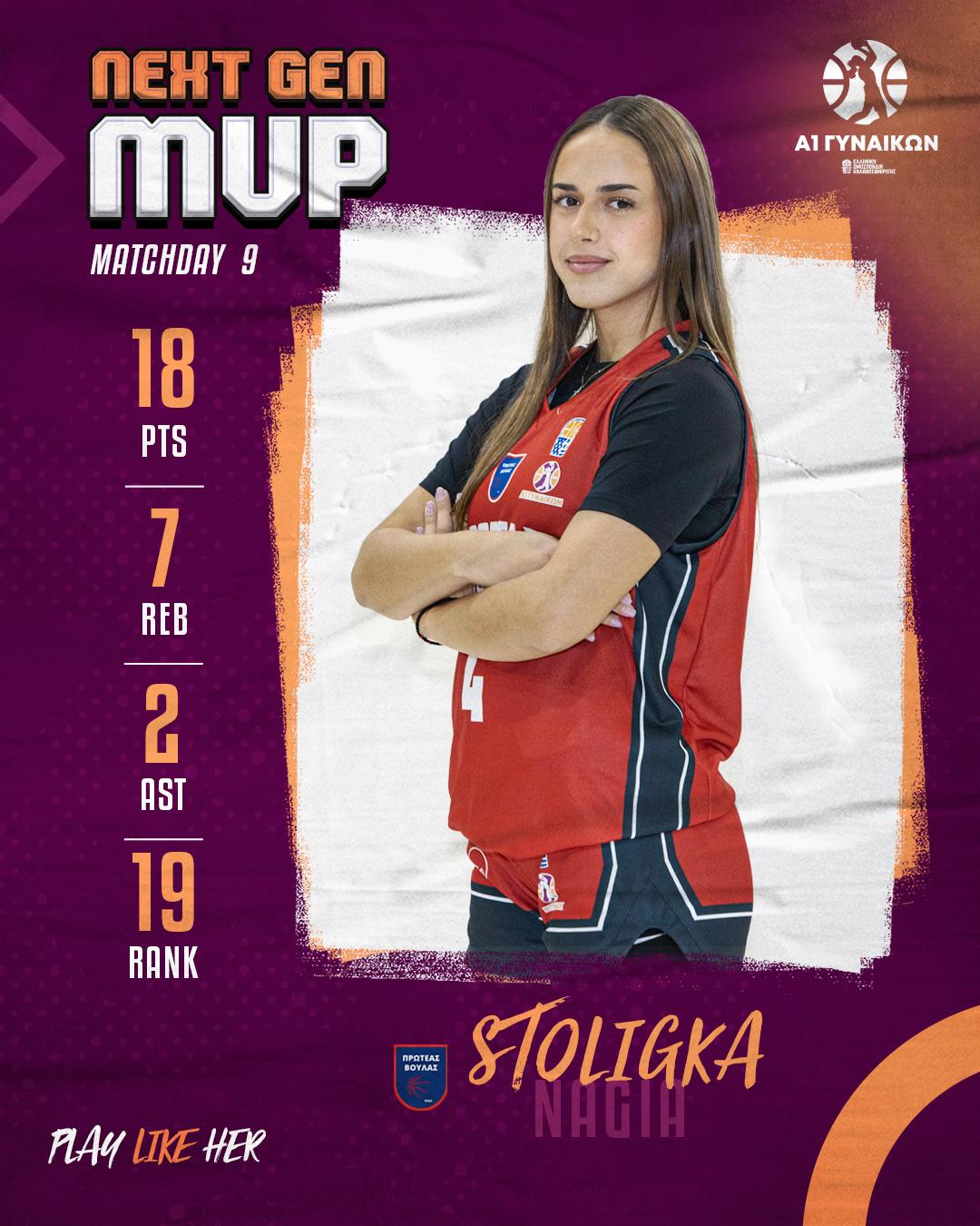 Η Νάγια Στολίγκα αναδεικνύεται για τρίτη φορά MVP Next Gen (κάτι ανάλογο είχε καταφέρει την 3η και την 4η Αγωνιστική) στην ήττα του Πρωτέα Βούλας από τον ΠΑΣ Γιάννινα με 75-68 είχε 18 πόντους, 7 ριμπάουντ, 2 ασίστ, ένα κλέψιμο συγκεντρώνοντας 19 στο σύστημα αξιολόγησης μετά από 38’55’’ συμμετοχής.