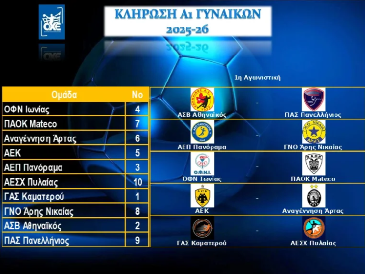 25/10/2025 1η Αγωνιστική – 10η Αγωνιστική 17/1/2026