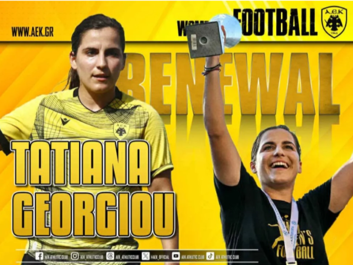 Την ανανέωση της συνεργασίας με την Τατιάνα Γεωργίου για τα επόμενα δύο χρόνια ανακοίνωσε η ΑΕΚ για την ομάδα ποδοσφαίρου γυναικών.