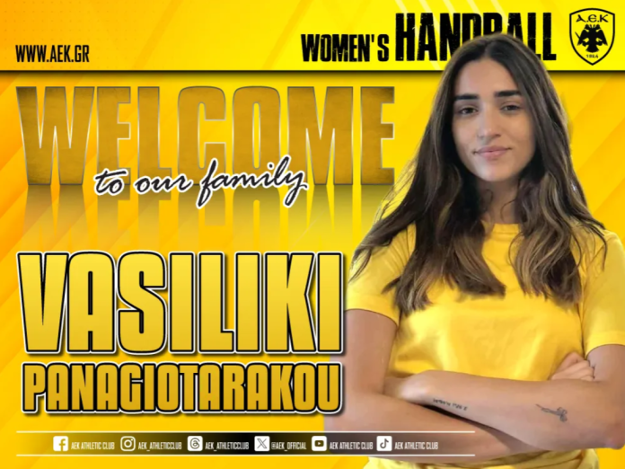 Η ΑΕΚ βρίσκεται στην ευχάριστη θέση να ανακοινώσει την έναρξη της συνεργασίας της με την Βασιλική Παναγιωταράκου. Η 23χρονη (19/11/2001) αθλήτρια θα ενισχύσει το τμήμα του Χάντμπολ Γυναικών του Συλλόγου.
