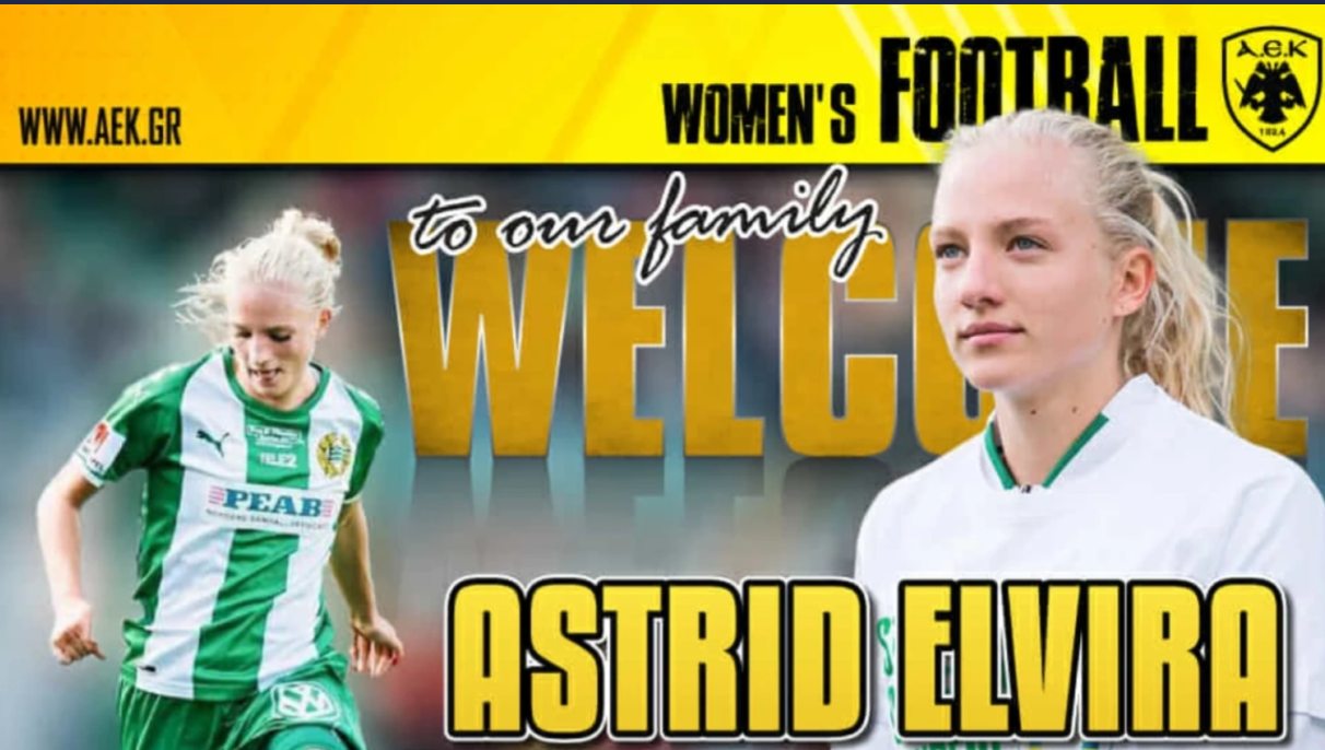 «Η ΑΕΚ βρίσκεται στην ευχάριστη θέση να ανακοινώσει την έναρξη της συνεργασίας της με την Άστριντ Ελβίρα Λάρσον. Η 26χρονη (07/09/1999) Σουηδή μέσος, υπέγραψε το συμβόλαιό της και εντάσσεται στο δυναμικό της γυναικείας ομάδας Ποδοσφαίρου του Συλλόγου.