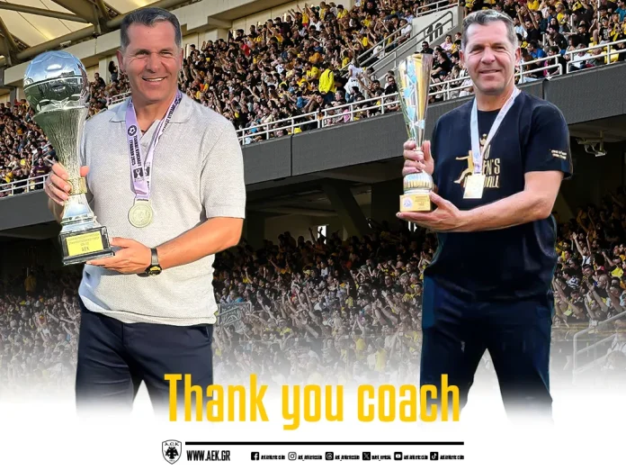 Η ΑΕΚ ανακοινώνει ότι αποδέχτηκε την παραίτηση που υπέβαλε για προσωπικούς λόγους ο Νίκος Κωτσοβός, ένας εξαιρετικός άνθρωπος και άριστος προπονητής, που όχι απλά συνέβαλλε τα μέγιστα για να γράψει η ομάδα μας ιστορία με την κατάκτηση του νταμπλ, αλλά και που κέρδισε την εκτίμηση και το σεβασμό όλων μας. Τον ευχαριστούμε από καρδιάς για την άψογη συνεργασία δύο ετών. Το όνομά του θα έχει πάντα ξεχωριστή θέση στην ιστορία της ομάδας μας. Του ευχόμαστε καλή συνέχεια στην καριέρα του.