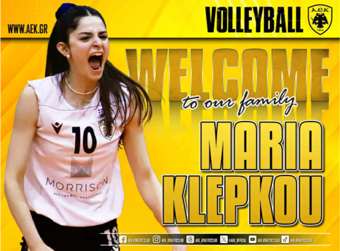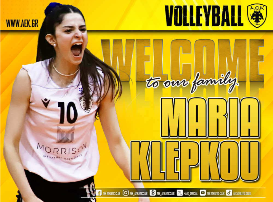 Η ΑΕΚ βρίσκεται στην ευχάριστη θέση να ανακοινώσει την έναρξη της συνεργασίας της με την Μαρία Κλέπκου. Η 25χρονη (13/05/2000) ακραία, ύψους 1.78 μ., υπέγραψε το συμβόλαιό της και εντάσσεται στο δυναμικό της γυναικείας ομάδας Βόλεϊ του Συλλόγου.