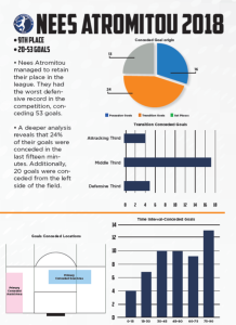 - Η αριστερή πλευρά της ομάδας ήταν η “μαύρη τρύπα” της αμυντικής της λειτουργίας, καθώς από αυτή την πλευρά οι αντίπαλοι της κατάφεραν να πετύχουν 20 γκολ.