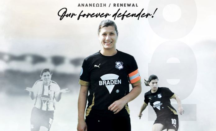 «Αρχηγός. Παράδειγμα. Θεμέλιο. Η παρουσία της δεν μετριέται μόνο με συμμετοχές και χρόνια. Μετριέται με τον τρόπο που κρατά σταθερή την ομάδα στα δύσκολα, με την ψυχραιμία της, τη συνέπειά της και τον σεβασμό που αποπνέει.Για ακόμη μία χρονιά το “10 το καλό” θα βρίσκεται εκεί που ανήκει – στην καρδιά της άμυνάς μας, δίπλα στις συμπαίκτριές της, μπροστά από την ομάδα. Είναι τιμή μας που συνεχίζουμε μαζί.»