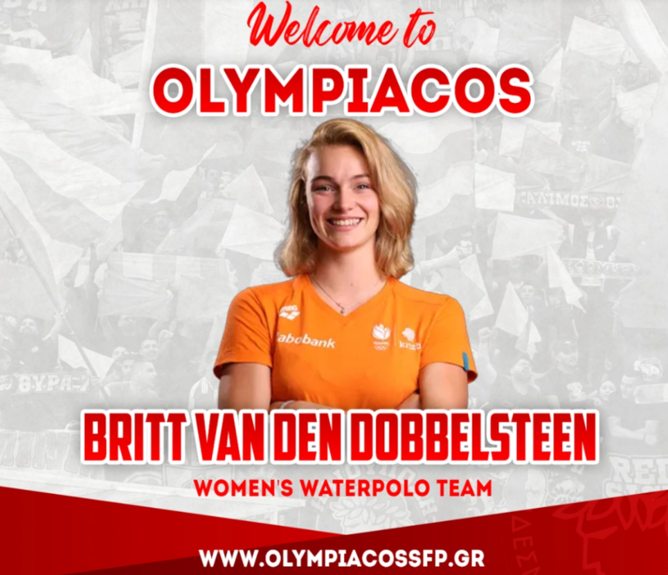 Ο ΟΛΥΜΠΙΑΚΟΣ Σ.Φ.Π. ανακοινώνει την έναρξη της συνεργασίας του με την Μπριτ Φαν Ντεν Ντόμπελστιν. Η διεθνής Ολλανδέζα τερματοφύλακας (ημ. γέννησης 6/9/2002, 1,84μ.) υπέγραψε το νέο της συμβόλαιο και εντάσσεται στο ρόστερ της ομάδας πόλο Γυναικών του συλλόγου.
