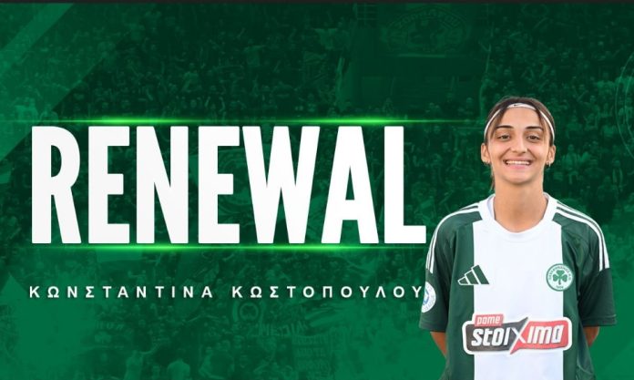 Ο Παναθηναϊκός Αθλητικός Όμιλος ανακοίνωσε την ανανέωση της συνεργασίας του με την Κωνσταντίνα Κωστοπούλου στη γυναικεία ομάδα ποδοσφαίρου, για την αγωνιστική σεζόν 2025-2026. Η 19χρονη μεσοεπιθετικός είχε σταθεί άτυχη την περασμένη σεζόν καθώς υπέστη ρήξη χιαστών, αλλά πλέον είναι ετοιμη να ενισχύσει τον Παναθηναϊκό και σίγουρα