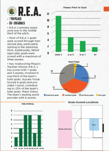 • Η ομάδα της ΡΕΑ πέτυχε 33 γκολ και δέχτηκε 28 γκολ.