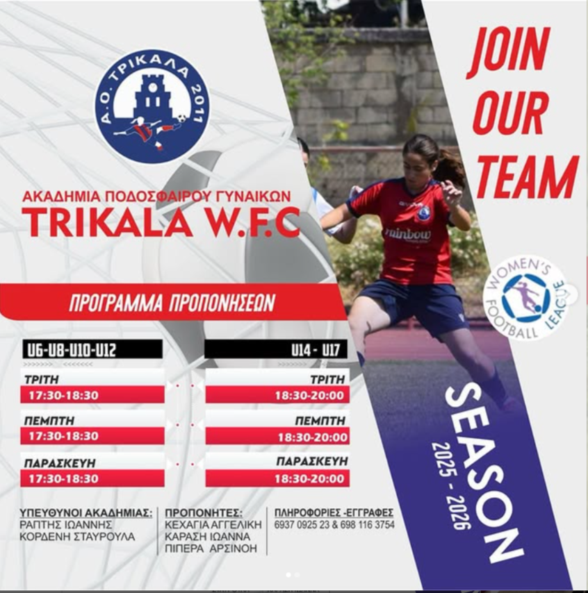 Η ακαδημία ποδοσφαίρου μας ανοίγει την αγκαλιά της και καλεί όλα τα κορίτσια να μπουν στο μαγικό κόσμο του ποδοσφαίρου!