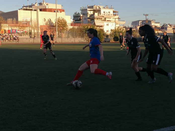 Στο 24′ η Γαρυφαλλιδου άνοιξε το σκορ με πλασέ εντός περιοχής.