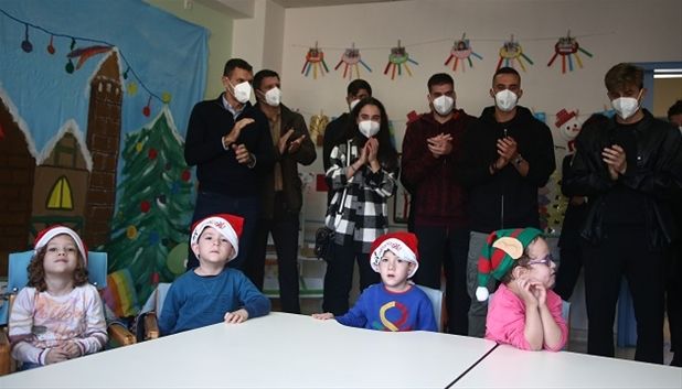 Στα παιδιά του ιδρύματος, “τα γενναία παιδιά”, όπως τα αποκαλούν οι άνθρωποι της οργάνωσης, χάρισαν την αγάπη τους και δώρα ο Γουστάβο Πογέτ, οι διεθνείς Δημήτρης Κουρμπέλης, Φώτης Ιωαννίδης, Λάζαρος Ρότα και Γιώργος Αθανασιάδης, η παίκτρια της Εθνικής Γυναικών Μαριάννα Γούλα, ο τεχνικός διευθυντής των Εθνικών Ομάδων Κώστας Κωνσταντινίδης και ο αθλητικός διευθυντής της Εθνικής Ανδρών Τάκης Φύσσας. Τα παιδιά ήταν ιδιαίτερα χαρούμενα και μαζί με τους ανθρώπους της οργάνωσης ευχαρίστησαν τους εκπροσώπους των Εθνικών Ομάδων.