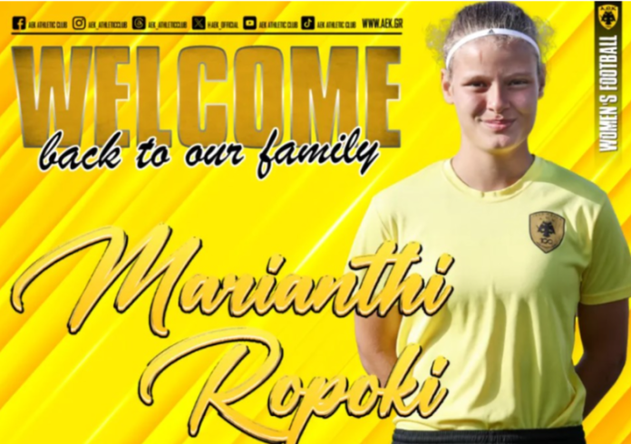 Την επιστροφή της Μαριάνθης Ροπόκη ανακοίνωσε η ομάδα ποδοσφαίρου γυναικών της ΑΕΚ.