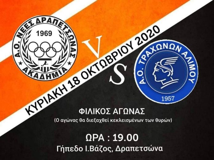 Το 5ο προγραμματισμένο φιλικό παιχνίδι θα δώσουν οι Νέες Δραπετσώνας, που θα φιλοξενήσουν τους Τράχωνες Αλίμου (Β’ Εθνική) στα πλαίσια προετοιμασίας της ομάδας μας.