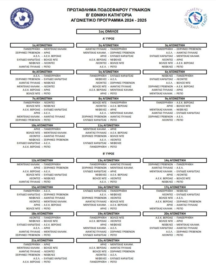 ΑρχικήΠοδόσφαιροΒ’ ΕθνικήΗ κλήρωση του Α ομίλου της Β Εθνικής Γυναικών