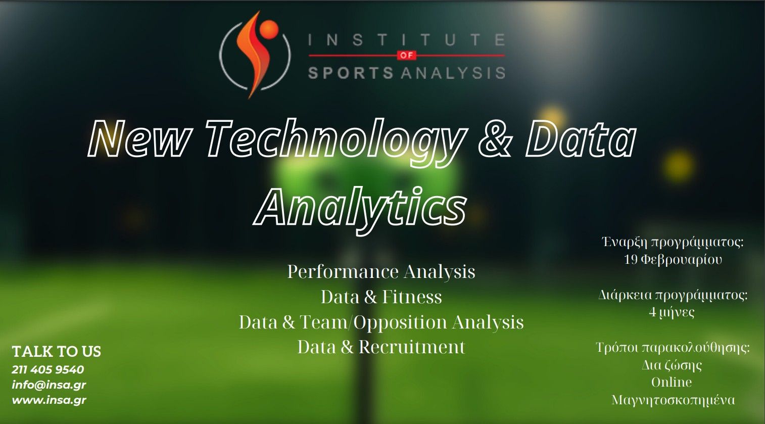 Το Institute of Sports Analysis διοργανώνει ένα ολοκληρωμένο και πιστοποιημένο εκπαιδευτικό σεμινάριο που προσφέρει στους συμμετέχοντες ένα πλήρες πακέτο γνώσεων στη χρήση των Data Analytics, στη χρήση ΑΙ τεχνολογιών στον τομέα του ποδοσφαίρου, χρήσης δεδομένων gps καθώς και στη χρήση των πλέον καινοτόμων λογισμικών ανάλυσης, και των τεχνολογιών κάλυψης προπονήσεων και αγώνων με αυτοματοποιημένες κάμερες, drones, κτλ.