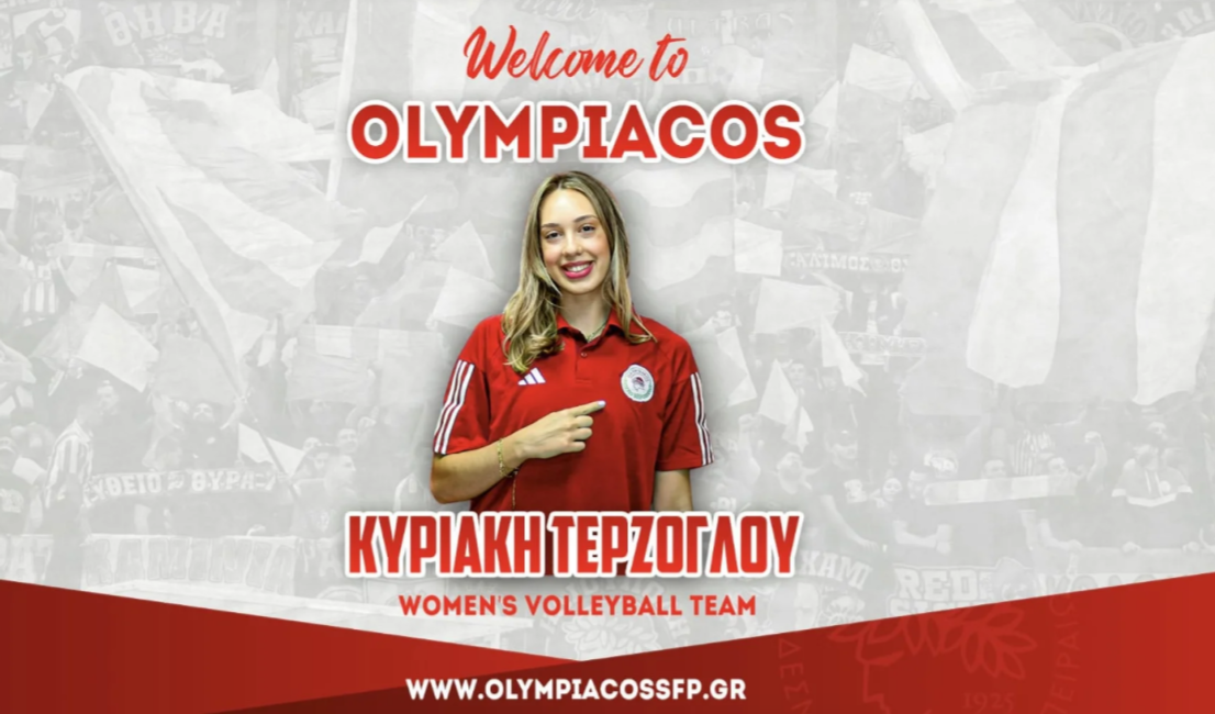 Ο ΟΛΥΜΠΙΑΚΟΣ Σ.Φ.Π. ανακοινώνει την έναρξη της συνεργασίας του με την Κυριακή Τερζόγλου. Η διεθνής κεντρική (ημ. γέννησης 22/11/2003, 1,88μ.) υπέγραψε το νέο της συμβόλαιο και εντάσσεται στο ρόστερ της ομάδας βόλεϊ Γυναικών του συλλόγου.