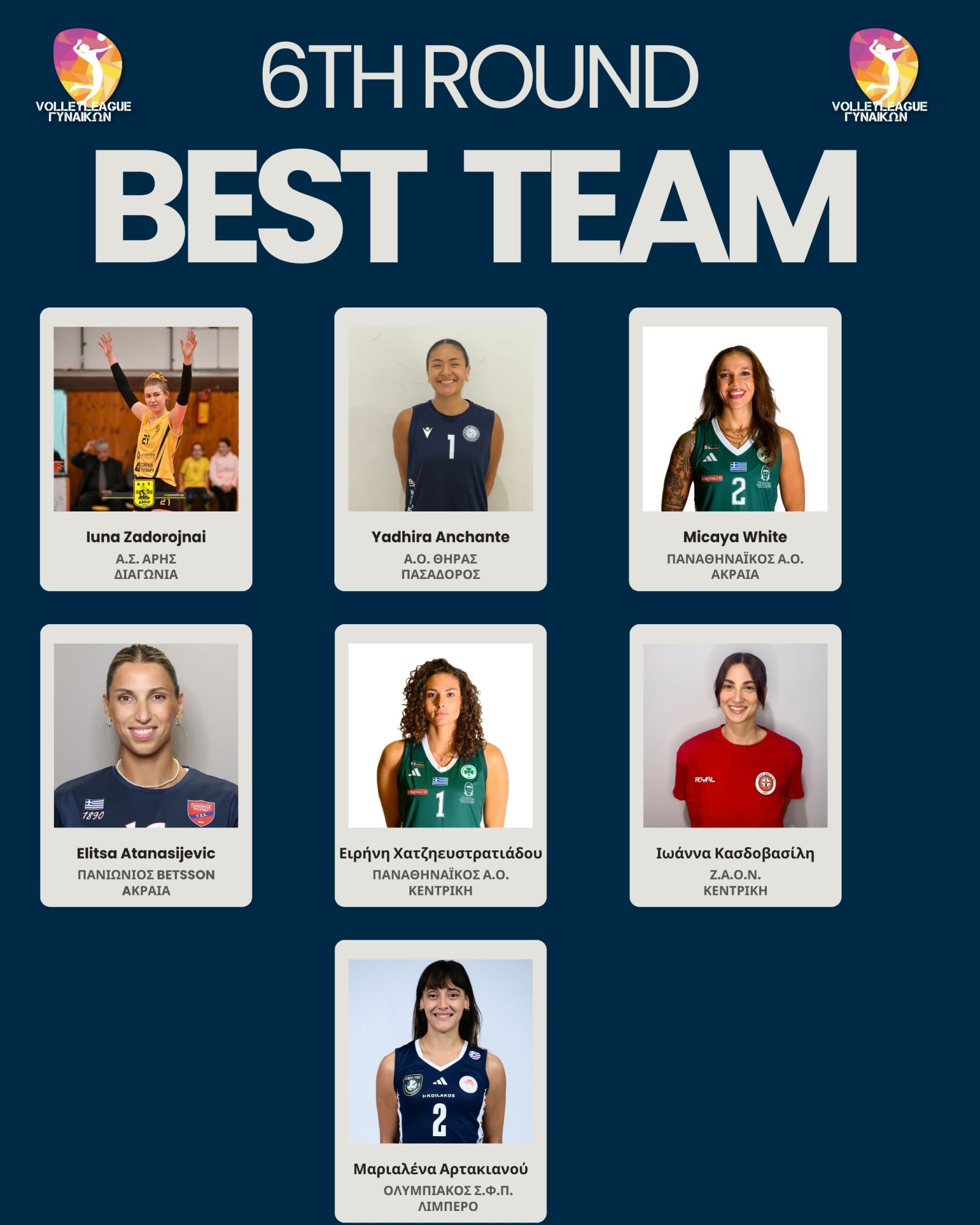 Ακραίες: Micaya White (Παναθηναϊκός Α.Ο.) 19π. (19/31 επ., 50% υπ. – 25% άριστες), Elitsa Atanasijevic-Vasileva (Πανιώνιος Betsson) 25π. (25/51 επ., 56% υπ. – 25% άριστες).