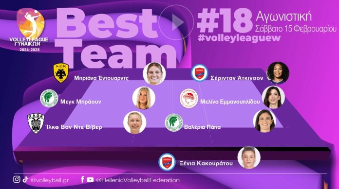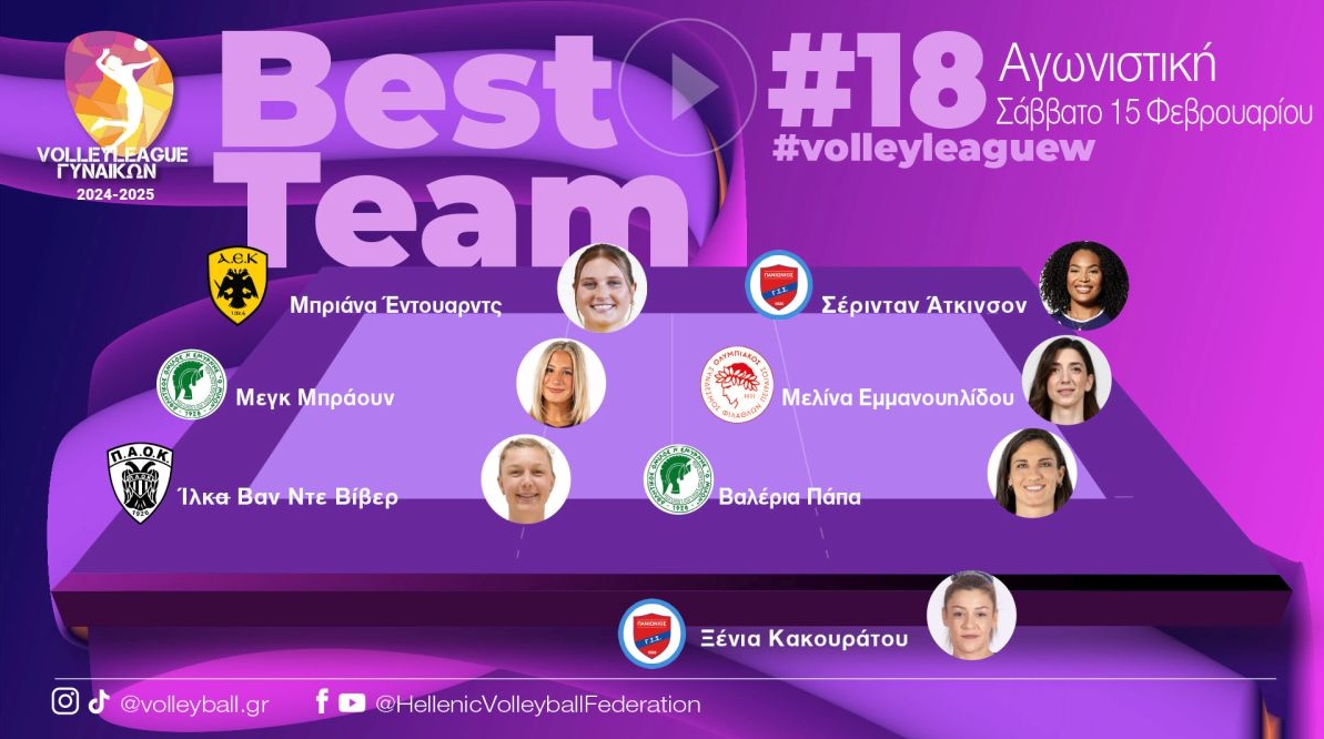 Κεντρικές: Μελίνα Εμμανουηλίδου (Ολυμπιακός Σ.Φ.Π.) 10π. (9/14 επ., 1 μπλοκ), Μεγκ Μπράουν (Α.Ο.Ν.Σ. Μίλων) 9π. (5/11 επ., 1 άσσος, 3 μπλοκ).